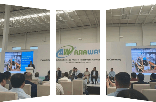 海威集團CEO王承永先生、海威集團副總裁兼海威墨西哥總經理Manuel Madrigal、海威集團副總裁王斌鋒先生與Nexteer Automotive戰略采購經理、SMR高管團隊、ZF代表、Eaton、Celestica、Robert Bosch、Jabil等汽車行業著名企業代表團隊,及圣路易斯波托西州憲法州長José Ricardo Gallardo Cardona、經濟發展部長Juan Carlos Valladares Eichelmann共同出席本次慶典,見證這一重要時刻。