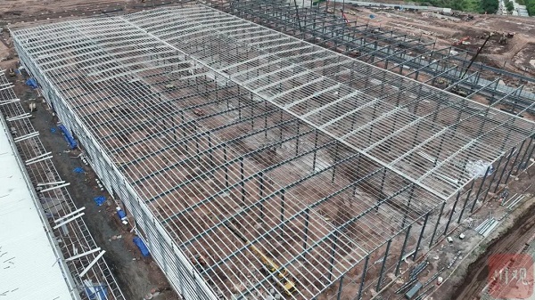 廠房搭建需要鋼結構件,據(jù)估算,整個園區(qū)所需鋼結構件超過1萬噸,要在短短半年內(nèi)完成生產(chǎn)和安裝,是一個巨大的工程。項目部提前“踩點”,在樁基建設期間,就要求成都、重慶等地的供應商,開始鋼結構件的定制,以確保主體工程能快速推進。其中,3號廠房早早就被“下定”,要在7月初進廠,其鋼結構件最先完成生產(chǎn)和安裝。