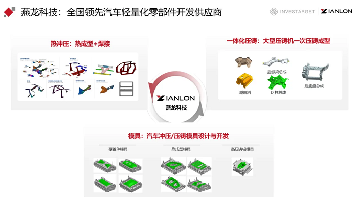 燕龍科技的核心優(yōu)勢源于其深耕行業(yè)三十余年的“模具+零部件”一體化能力。公司以高精度模具設(shè)計(jì)與制造為基石,其中超過60%的模具項(xiàng)目聚焦于側(cè)圍、翼子板等行業(yè)公認(rèn)的高難度車身覆蓋件,技術(shù)實(shí)力位居國內(nèi)前列。基于深厚的模具功底,公司成功將能力延伸至下游的熱成型與一體化壓鑄兩大核心工藝,并積極探索下一代輕量化材料的應(yīng)用。