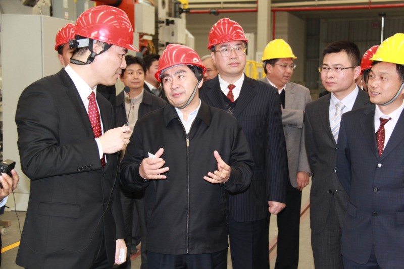 在冷室機車間,王書記了解了力勁各個系列的冷室壓鑄機,以及它的結構和工作原理,并聽取了曹陽總裁所做的企業經營狀況匯報。過去的2011年,力勁集團保持較好的發展勢頭,目前各個生產工廠的訂單充足。