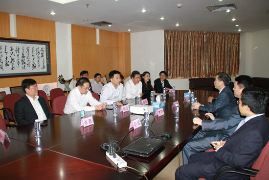 力勁集團(tuán)投資發(fā)展部總監(jiān)孫猛先生、華南市場布銷售總監(jiān)鄧毅明先生會見時(shí)就坐。