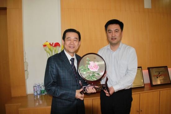 昆山市政府領(lǐng)導(dǎo)向力勁集團(tuán)創(chuàng)始人劉相尚先生贈送禮物,左為劉相尚先生,右為昆山市市長路軍先生